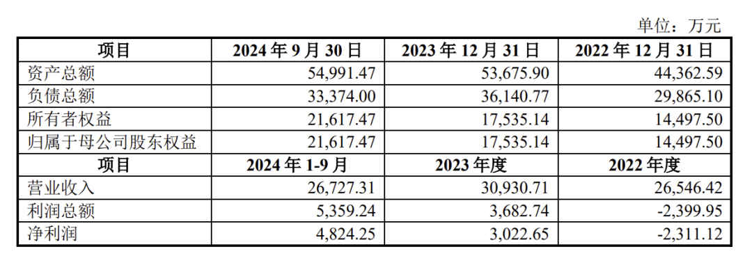 业绩上,欧易生物自2023年开始扭亏为盈。其2022年营收2.65亿元,净亏损983万元;2023年营收跃升至3.09亿元,净利润转正为3022.65万元;2024年前三个季度营收达2.67亿元,净利润为4824.25万元。